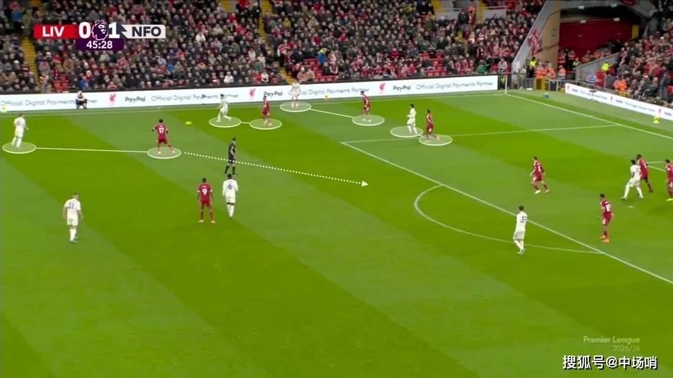ในกรณีนี้ ซาลาห์ถูกประกบโดยเนโก วิลเลียมส์ แต่การวิ่งของเขาจากเส้นข้างสนามเข้าสู่กลางสนามไม่มีใครตามประกบ