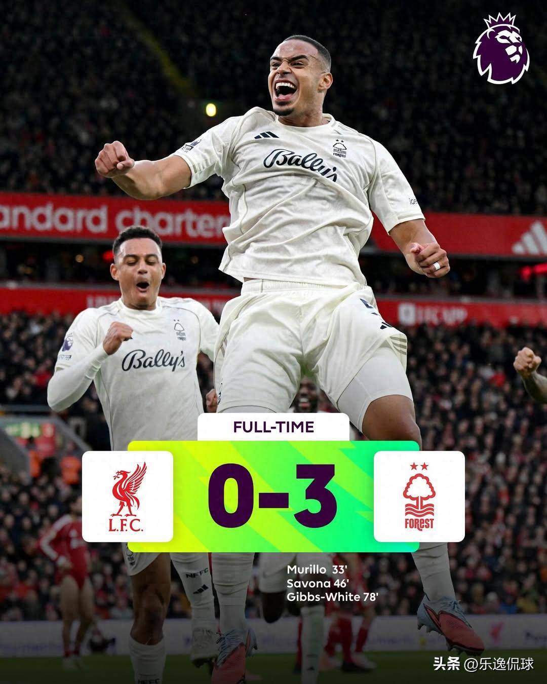 การแข่งขันครั้งนี้กลายเป็นหายนะอย่างแท้จริงสำหรับลิเวอร์พูล ในครึ่งแรก มูริลโล่ทำประตูให้ทีมน็อตติงแฮม ฟอเรสต์ขึ้นนำด้วยลูกวอลเลย์จากลูกเตะมุม เพียง 39 วินาทีหลังจากเริ่มครึ่งหลัง ประตูของซาวันนาห์ทำให้ทีมหงส์แดงตกอยู่ในสถานการณ์ที่ยากลำบาก ก่อนที่กิบส์-ไวท์จะยิงซ้ำปิดท้ายชัยชนะแม้จะครองบอลได้เหนือกว่า แต่ลิเวอร์พูลกลับไร้หนทางในการเจาะแนวรับที่แน่นหนาของน็อตติงแฮม ฟอเรสต์ ตลอดทั้งเกม ความไร้ระเบียบและความเปราะบางทั้งในเกมรุกและรับของทีมถูกเปิดเผยอย่างชัดเจน ท่ามกลางความเงียบงันของแฟนบอลเจ้าบ้าน "หงส์แดง" ต้องกลืนความพ่ายแพ้อย่างเจ็บปวดอย่างหลีกเลี่ยงไม่ได้