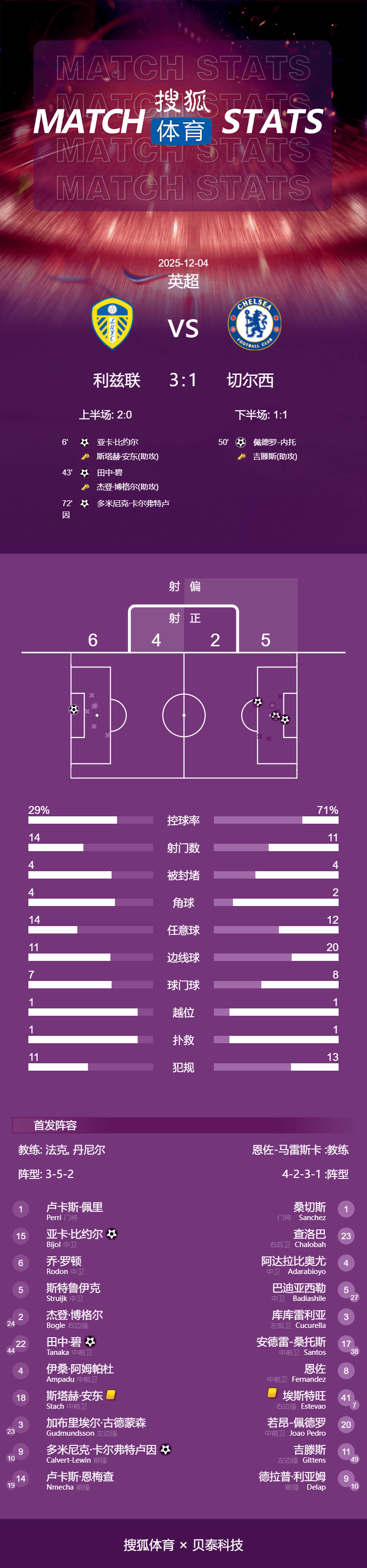เวลา 04:15 น. ตามเวลาปักกิ่ง วันที่ 4 ธันวาคม การแข่งขันพรีเมียร์ลีกฤดูกาล 2025/26 นัดที่ 14 ยังคงดำเนินต่อไป โดยเชลซีเดินทางไปเยือนสนามเอลแลนด์ โรด เพื่อพบกับลีดส์ ยูไนเต็ด ในครึ่งแรก บียอร์กทำประตูขึ้นนำให้ลีดส์ด้วยลูกโหม่ง ก่อนที่ทานากะ อาโออิจะยิงประตูเพิ่มให้ทีมขึ้นนำห่างด้วยลูกยิงอันทรงพลังในครึ่งหลัง เนโต้ทำประตูตีตื้นให้เชลซี แต่ความผิดพลาดร้ายแรงของโทซิน อดาราบิโอโยในกรอบเขตโทษทำให้โดมินิก คัลเวิร์ต-ลูวินยิงประตูชัยได้ จบเกมเชลซีพ่ายแพ้ให้กับลีดส์ ยูไนเต็ด 1-3 ทำให้พวกเขาไม่ชนะในลีกติดต่อกันเป็นสองนัด