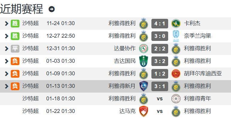 • 第一:少了大腿!利雅得胜利真正的进攻大腿肯定不是C罗,而是马内!非洲杯开打,马内缺席,结果利雅得胜利立马不会踢了,从沙特超10连胜到最近4轮的1平3负,少了马内,利雅得胜利就是少了长矛少了枪头。