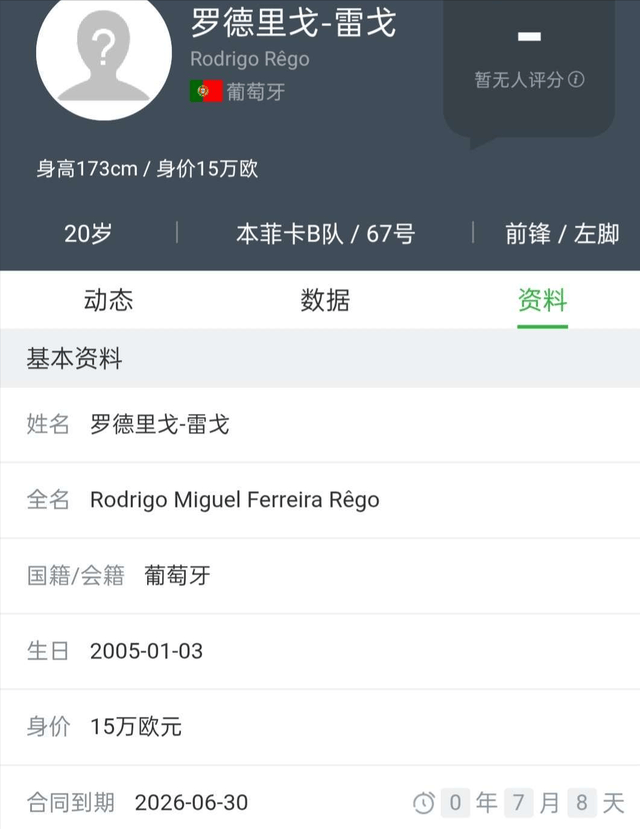 值得注意的是,小雷戈的合同将在本赛季到期,尽管他的身价目前仅为15万欧元,但如果他能把握住机会,本赛季势必会迎来一次飞跃式的成长。