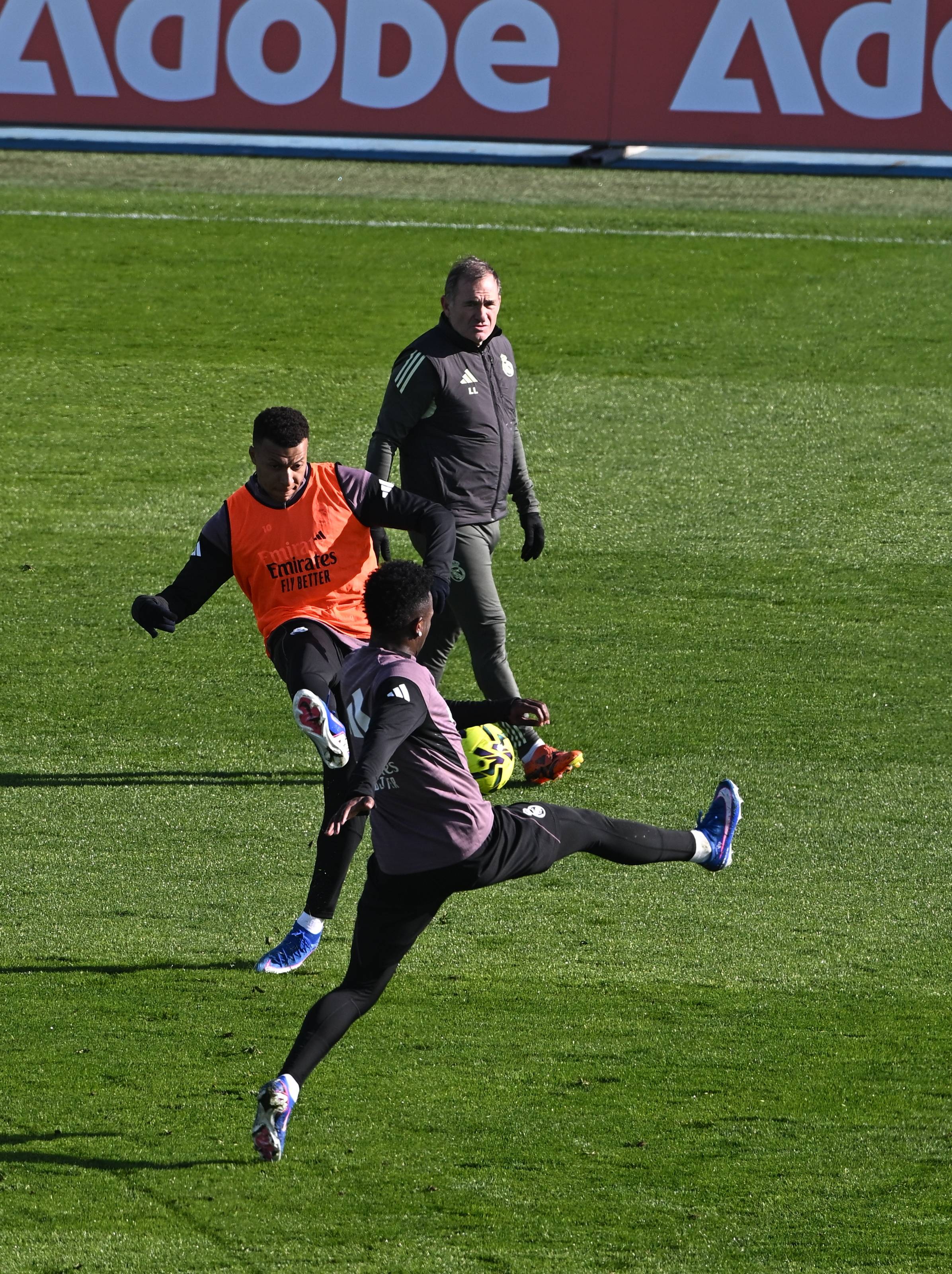 เมื่อวันที่ 30 ธันวาคม นักเตะเรอัล มาดริด คีเลียน เอ็มบัปเป้ (ซ้าย) และ วินิซิอุส จูเนียร์ (ด้านหน้า) ระหว่างการฝึกซ้อม ซินหัว/EPA