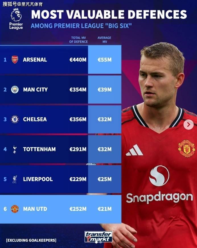 Transfermarkt ได้รวบรวมมูลค่าทีมกองหลัง (ไม่รวมผู้รักษาประตู) ของสโมสรใหญ่ 6 ทีมในพรีเมียร์ลีก โดยอาร์เซนอลเป็นทีมที่มีมูลค่าสูงสุดในรายการนี้ การวิเคราะห์ (มูลค่าทีมกองหลัง + มูลค่าทีมเฉลี่ย) แสดงให้เห็นถึงความน่าเชื่อถืออันยอดเยี่ยมของทีมปืนใหญ่ที่ได้รับการสนับสนุนจากตัวเลข: